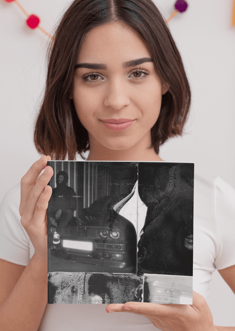Display your favorite album artwork with this -TRAGEDY+ - $not 8 x 8 canvas print. Each piece is professionally printed with vibrant, fade-resistant inks that preserve the original album cover's color depth and detail. Perfect for music enthusiasts seeking gallery-quality wall art that celebrates iconic releases. The compact square format works beautifully in any room, from studios to living spaces. Customize with any album cover of your choice for a personalized touch that reflects your musical taste.